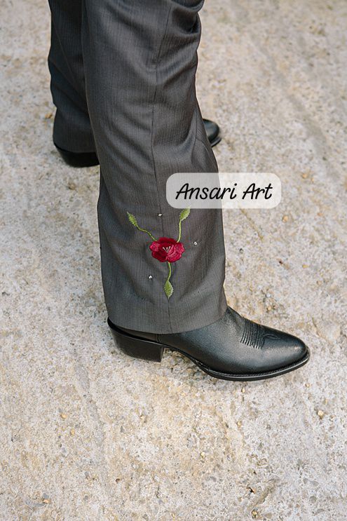 This elegant hand embroidered grey suit is designed for grooms who want timeless tailoring with a romantic, artistic touch. Featuring delicate red rose embroidery with flowing green vines, each motif is carefully stitched by hand to create a refined yet expressive wedding look.