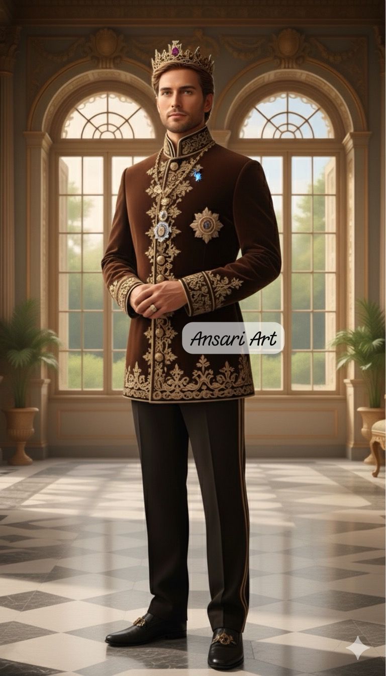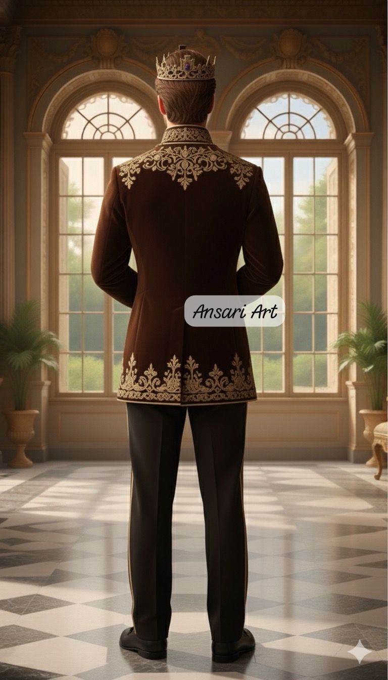 Be the first to review “Men 3Pc Bespoke Brown Velvet Royal Uniform & Cape | Custom Gold Embroidered Prince Suit | Luxury Wedding Stage Wear Suit Pant Cape Set”